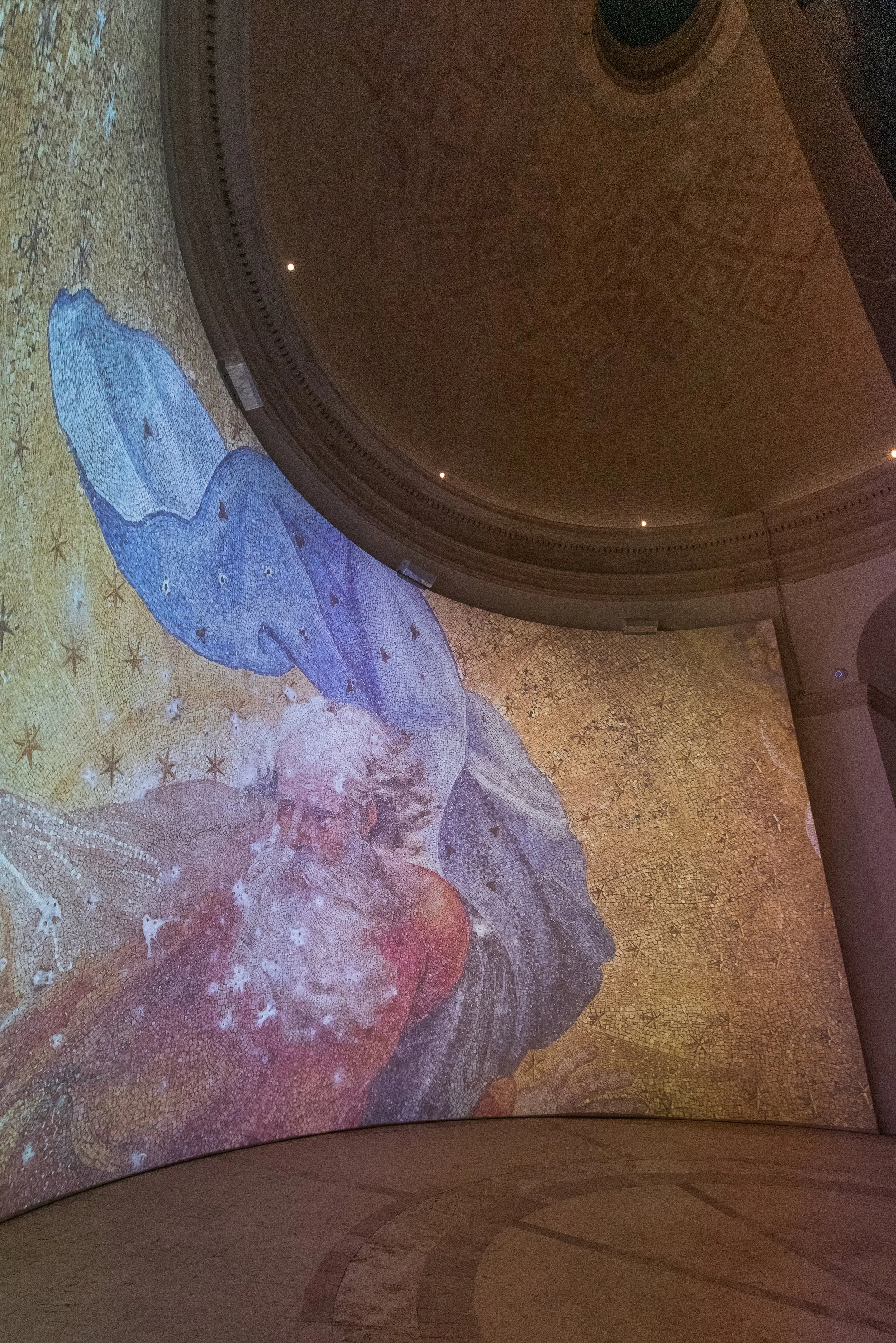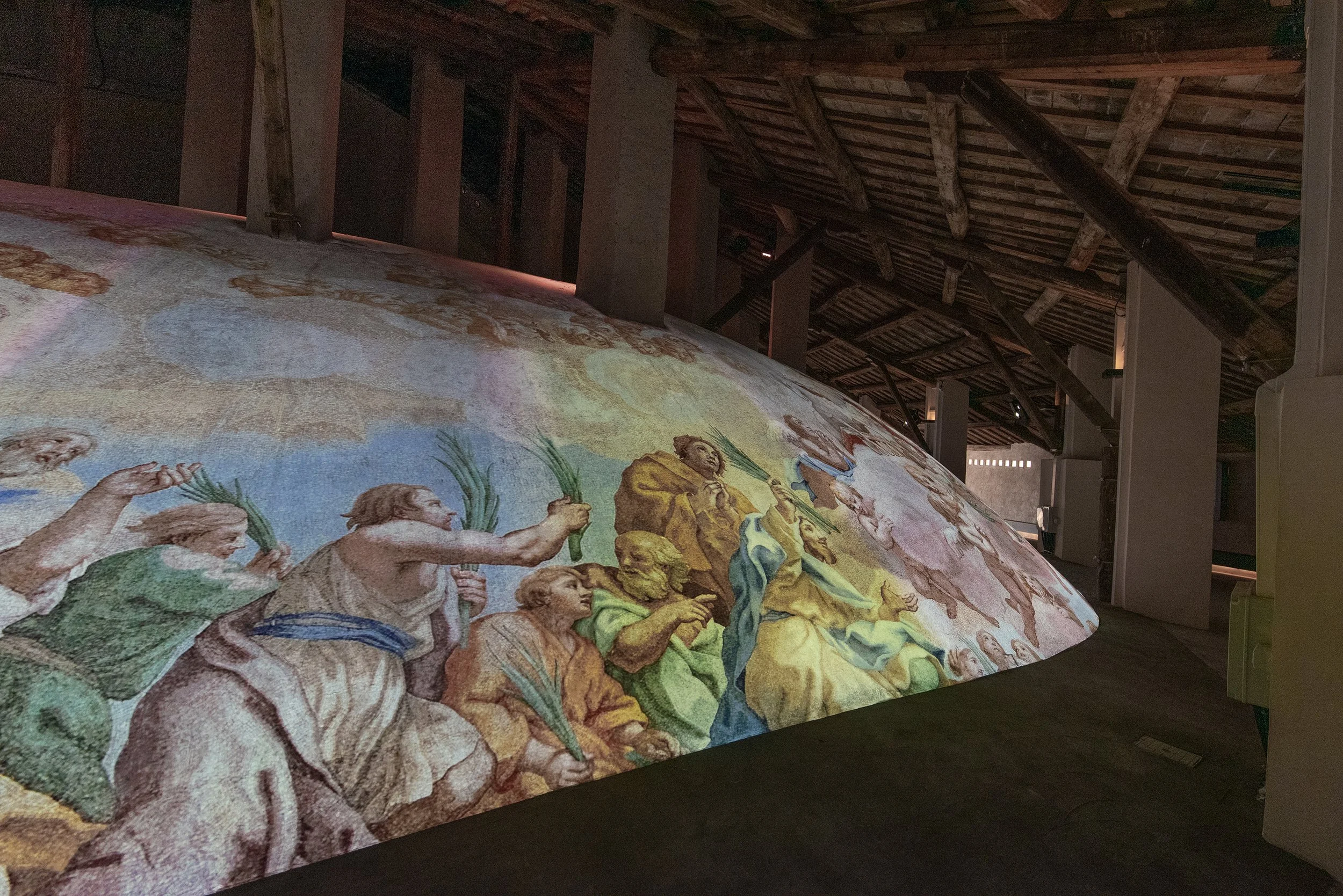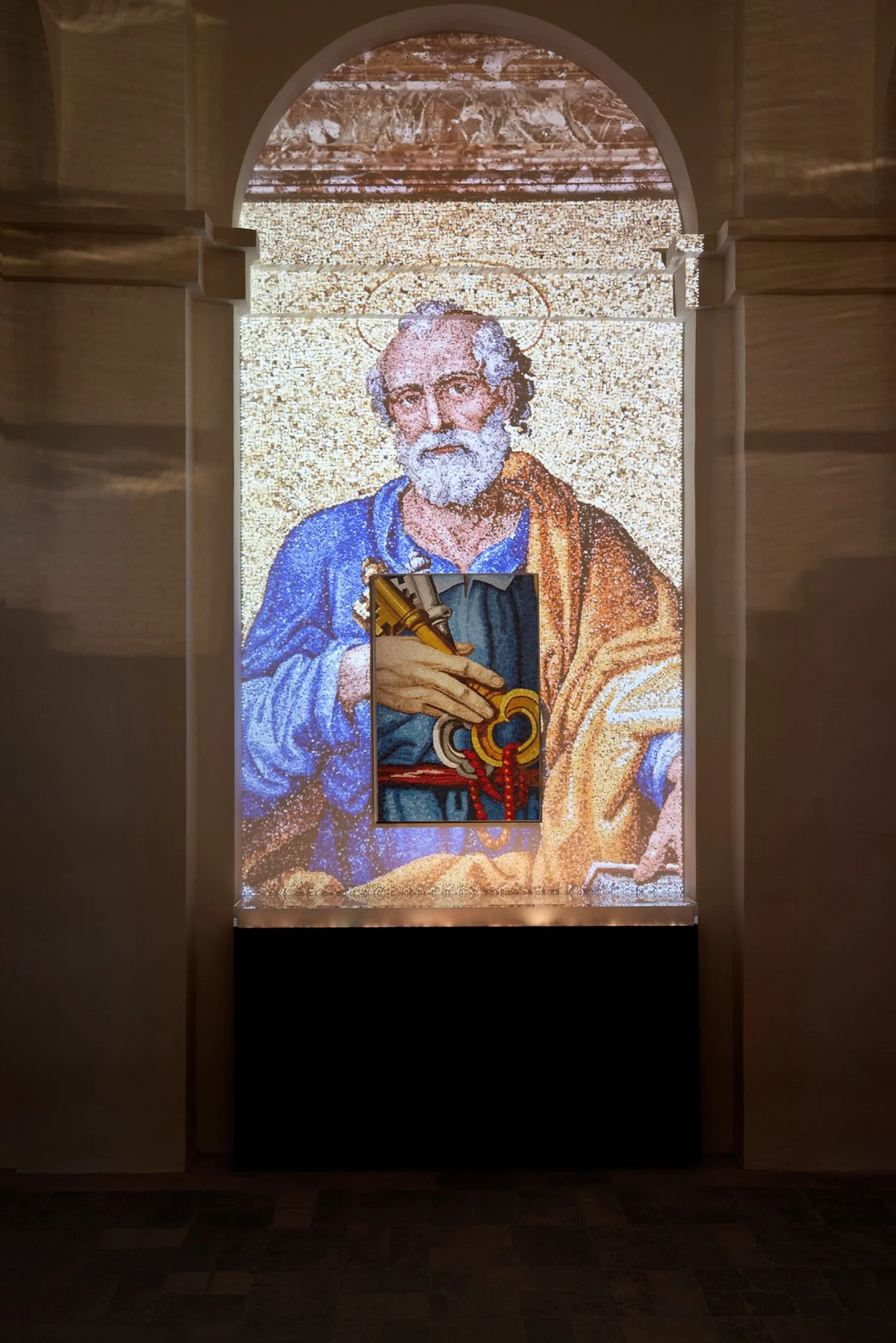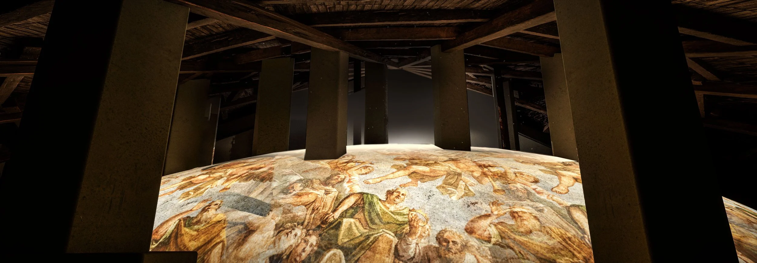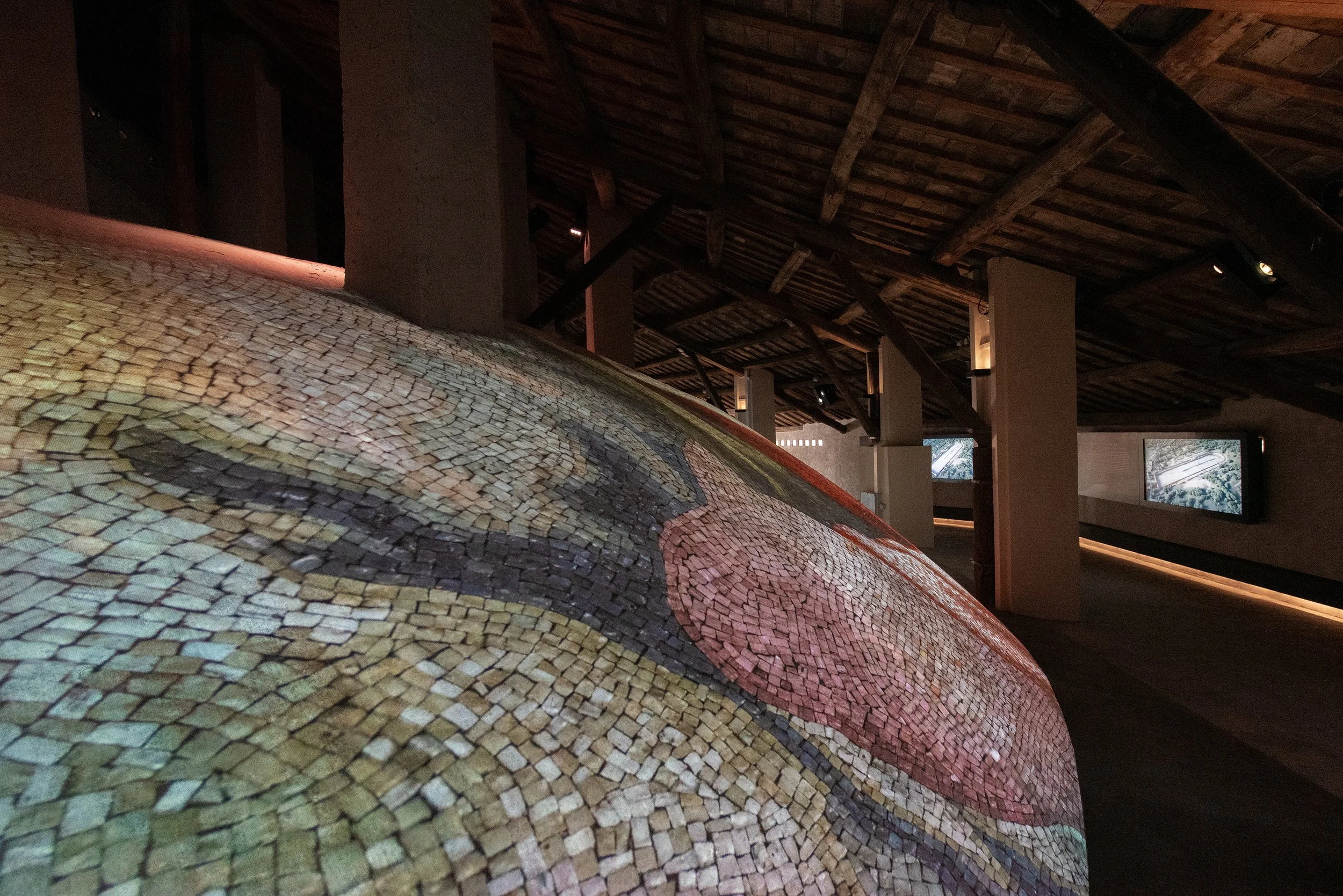In the exhibition “Pétros ení“, we have dedicated a special spot to the art of mosaics in the Basilica. We found an intriguing link between a piece of mosaic, one of the smallest and oldest artistic elements in the Basilica, and today’s project’s - Digital Twin of St. Peters Basilica smallest detail - point or pixel. As an outcome we have mixed the real mosaic and projection, Renaissance and 21st century.