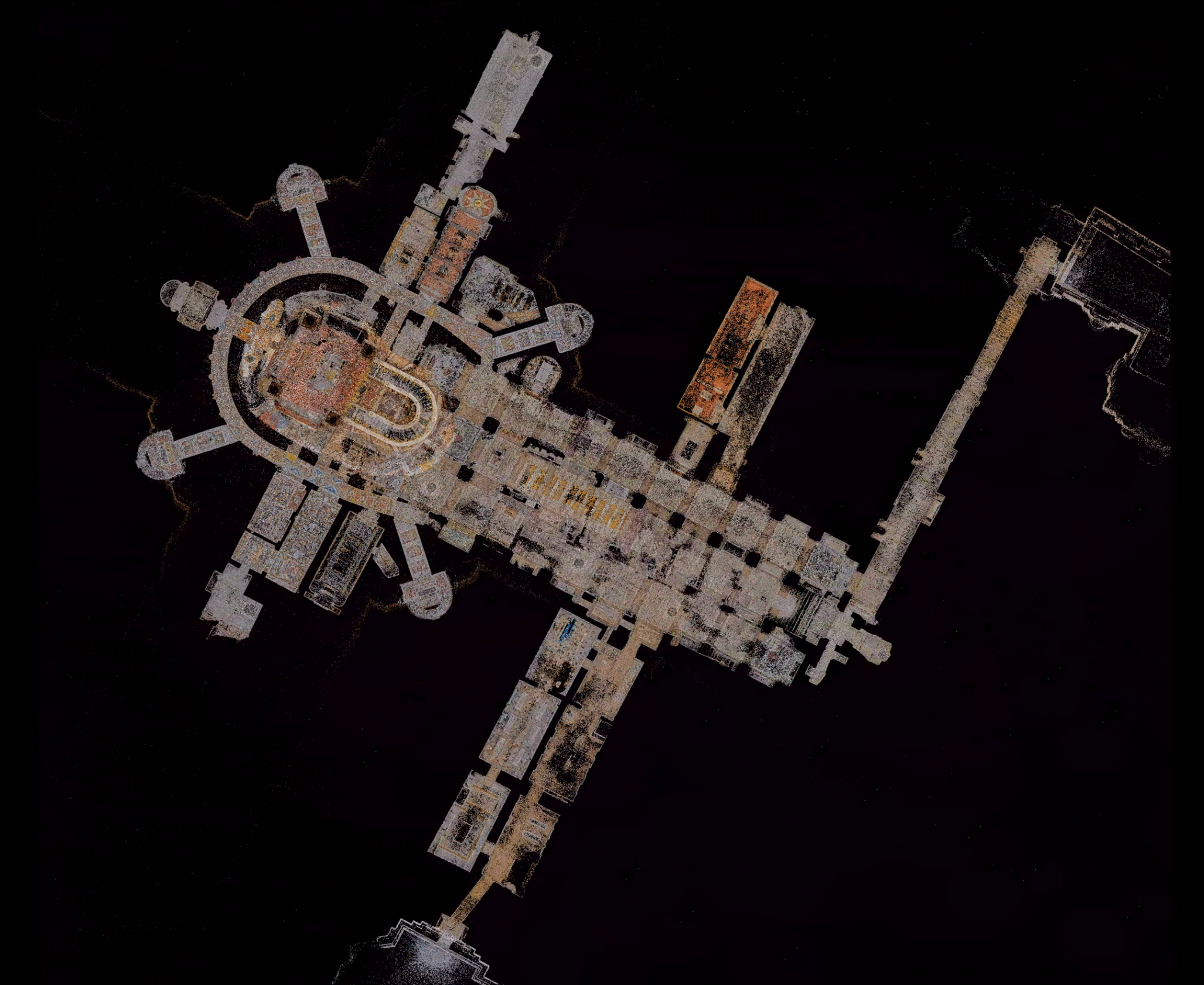 This section focuses on the modern Basilica, detailing its construction stages and exploring its theological and spiritual themes. Utilizing advanced Iconem’s survey techniques, it presents detailed images of artistic features, discovering all the masterpieces housed within the Basilica, that are often invisible or hard to see with the naked eye, providing an "augmented" vision of the Basilica.