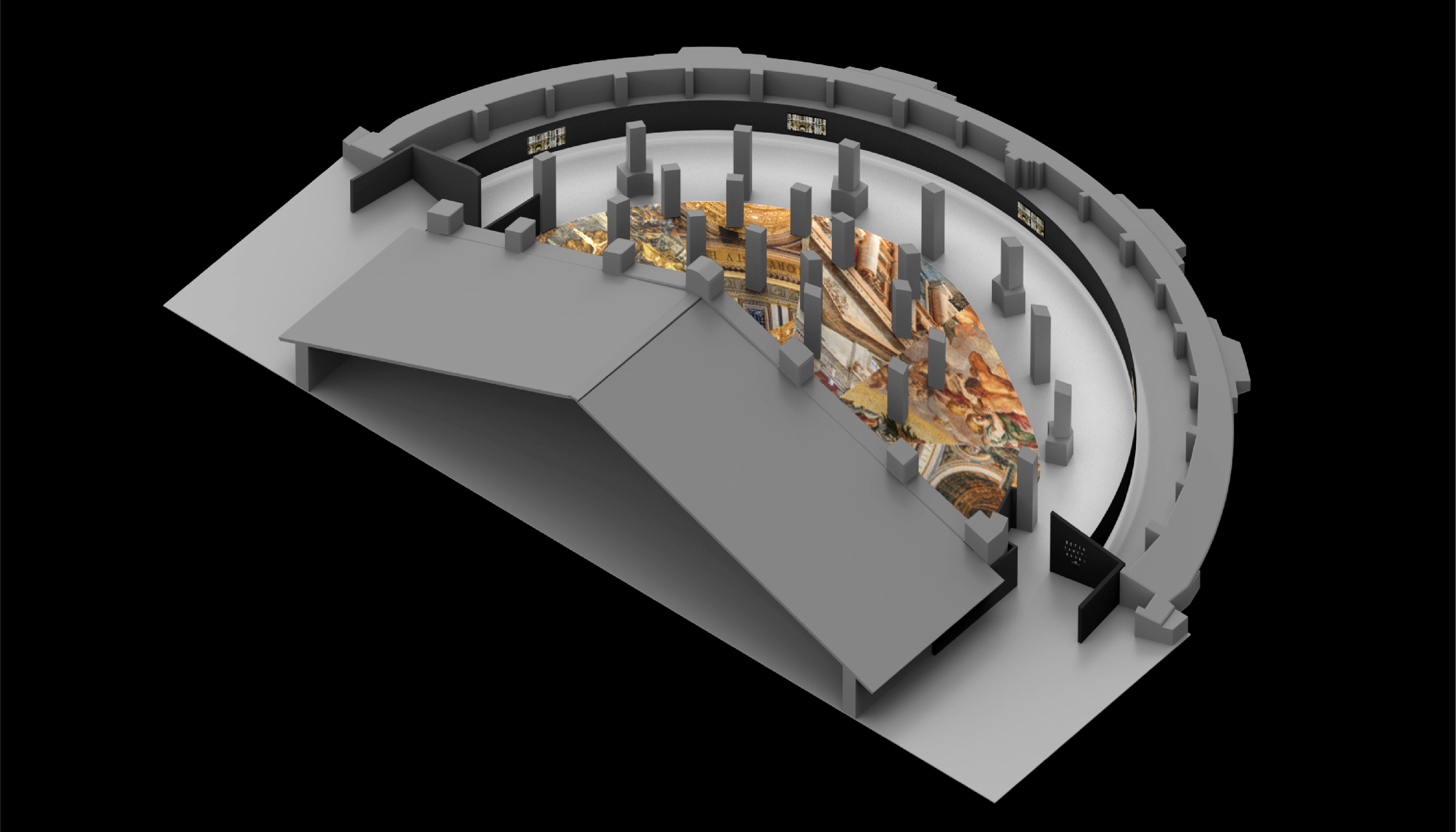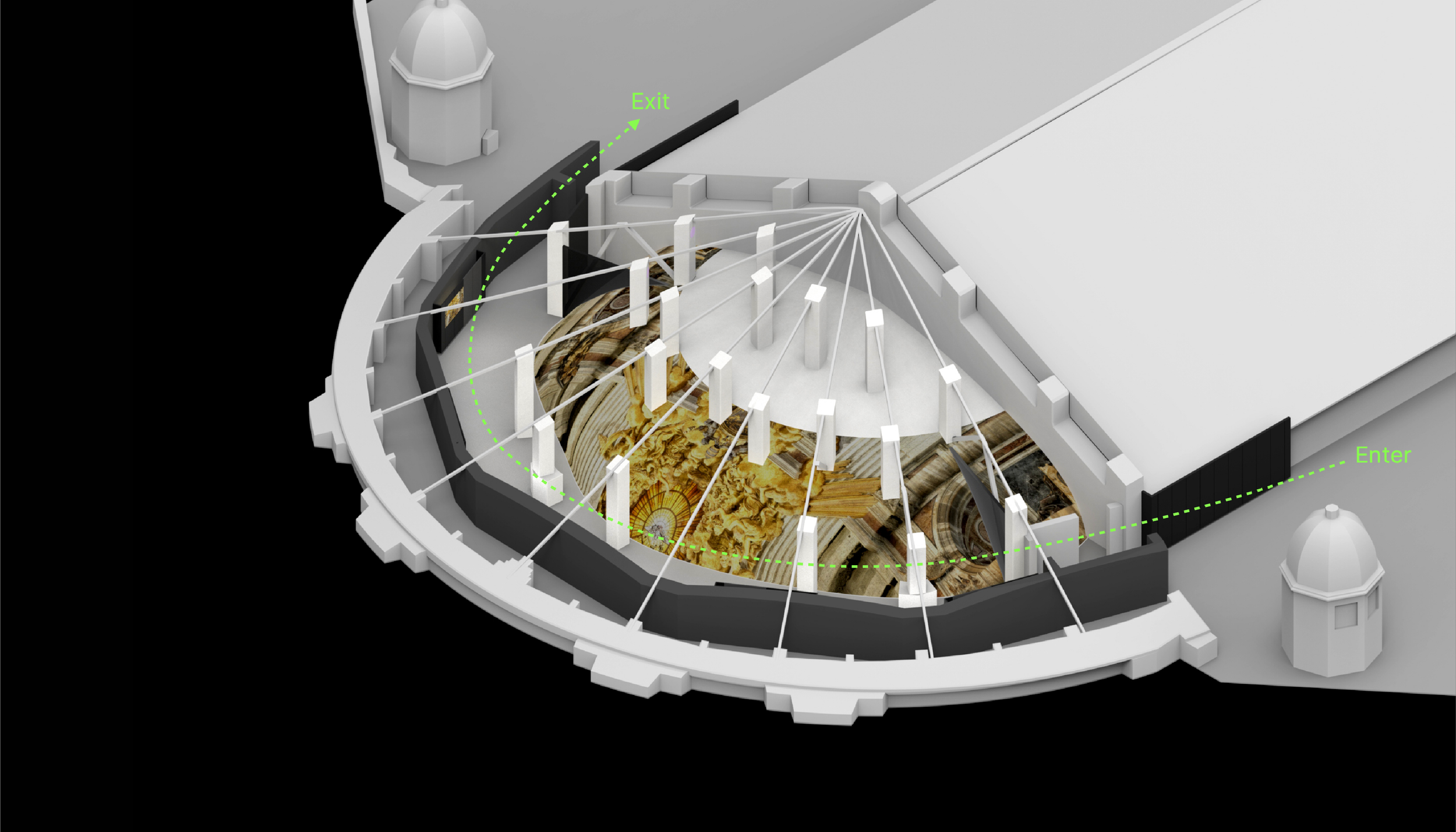 VENTAGLIO is a fan-shaped roof covering the northern aisle of the basilica from precipitation. Ventaglio will be visited by thousands of visitors daily, as those visiting Michelangelo's great dome in 2025 will pass precisely through these spaces. The exhibition can be viewed in a maximum of 10 minutes, during which the visitor will understand the history of the basilica and have the opportunity to view projections on the dome.