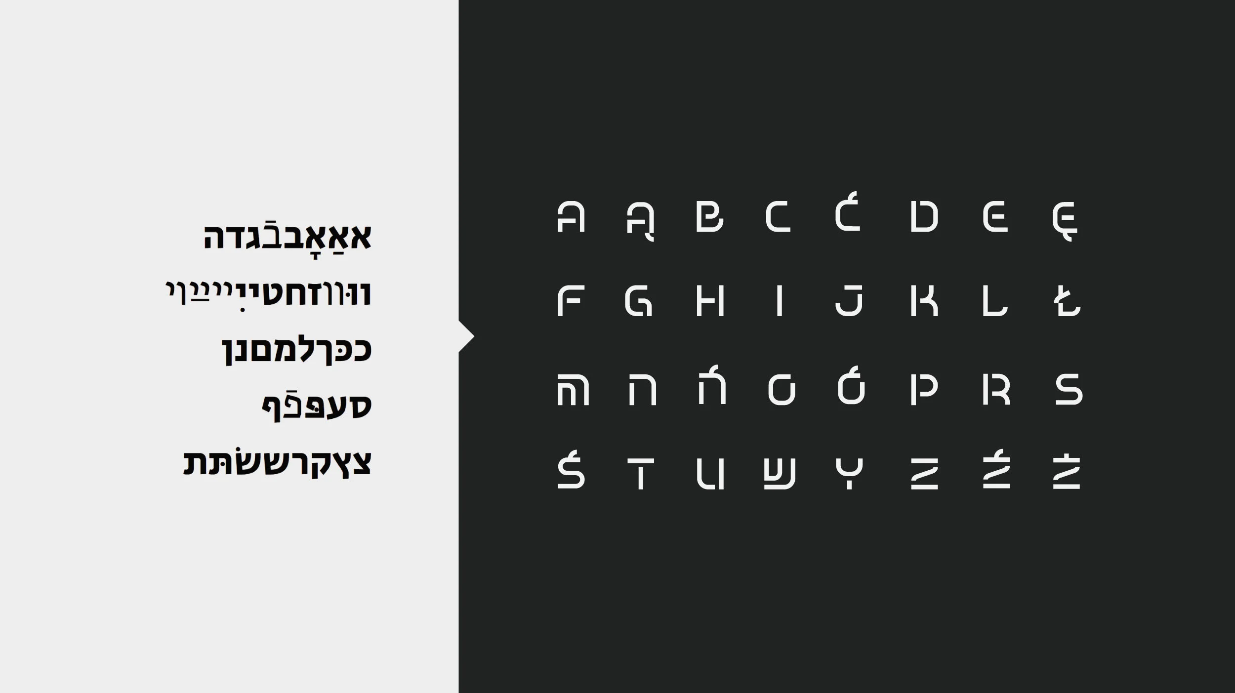 We created a unique font that was inspired by the Yiddish alphabet. Yiddish is historical Ashkenazi Jews language that is written in Hebrew, yet has a huge German and Slavic influence.